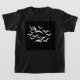 This kids t shirt features a collection of simple images of bats flying together in a cloud pattern. The bats are white and the background is black. Kids are sure to love this cute design. The design is shown on a kids black tee but is also available on a range of different colours and styles of clothing for kids, babies, women and men.