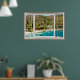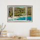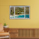 The artwork creates the illusion of having a bay window overlooking a Caribbean Beach. The illusion makes you feel as though you're looking out at a beautiful beach scenery.