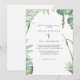 White background no parents listed tropical wedding invitation. Tropical foliage. Together with our families... corners.
