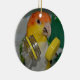 Cute White Bellied Caique parrot playing with a yellow bottle cap.