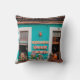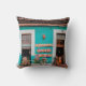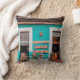 WHITE BICYCLE PARKED BESIDE TEAL PAINTED CONCRETE THROW PILLOW
