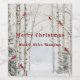 Pretty personalized wine labels with beautiful White Birch Tree forest, snow covered pine trees with pretty red Cardinals sitting in the branches.