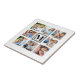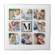 Ceramic tile with a white and black 8 family photo grid-style collage and space in the middle for a monogrammed initial.