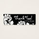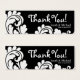 White & black damask Wedding favour Gift tag , featuring the words "Thank You" in a fancy font. The bride and grooms' names and wedding date are printed below the message.A damask background with white and black accents is printed behind the wording. you can add your own thank you message or other wording. alternative paper and colours available. You will need to punch a hole in one corner of the card with a paper punch, thread through some ribbon and tie to your favour box.