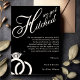 Elegant black and white wedding announcement card with shiny diamond ring and photo on the back. Personalize it with your event details.