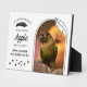Remember your beloved pet bird forever with this white photo plaque printed with a photo of your pet bird inside an arch-shaped frame adorned with a feather. Add your bird's name in a modern white script, their year of birth and year of passing, and a comforting and inspirational quote above a flock of birds flying high and free.