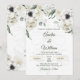 White Black Green Elegant Anemone Wedding Invitation