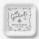 Be proud, rejoice and showcase this milestone of your favorite grad! Celebrate with this quirky, whimsical, simple, modern, custom paper plate. Fun black handwritten script typography and hand drawn graduation icon sketch doodles overlay a clean white background. Personalize the custom text with your graduate’s name and class year or special message. Available in 2 sizes: 7” square or 9” square. Matching invites, thank you cards, hand fans, banners, yard signs and other graduation goodies are also available in this trendy and playful collection. Guaranteed to add stylish fun to their special party!