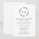 White Black Leaf Wreath Monogram Rehearsal Brunch Invitation