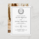 White Black Leafy Crest Monogram Photo Wedding Invitation