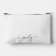 White Black Modern Script Monogram Name Accessory Pouch