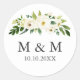 White Bloom | Floral Wedding Classic Monogram Classic Round Sticker