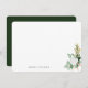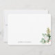 White Bloom Greenery Women Personalized Stationary Note Card with beautiful white floral watercolor details and classic greenery leaves. Space for your personalized name in a custom classic traditional serif font.
