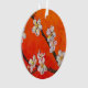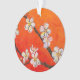 White blossoming branch in spring, Reproduction of original painting by Julia Doria. Acrylic painting on paper. Blossoming fruit tree branches on orange background.