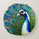 White blue and Green Piebald Peacock Round Pillow