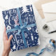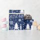 This Christmas theme pattern features white holiday symbols, and Merry Christmas typography all in a seamless pattern with a customizable blue background.