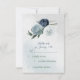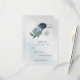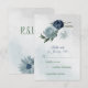 Beautiful botanical wedding response card featuring romantic white, dusty blue and navy blue flowers with green leaves.