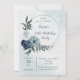 white & blue floral greenery wreath birthday party invitation