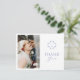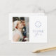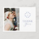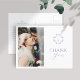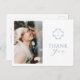 Chic and modern simplicity. This memorable "thank you" postcard features a couple photo, a lovely set of contemporary fonts and floral monogram in dusty blue, against a crisp white background at the front and a contrasting crisp white at the back.