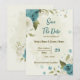 white & blue flowers botanical wedding save the date