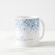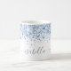 A stylish white background, decorated with blue faux glitter dust. Personalize and add your name written with a trendy hand lettered style script with swashes.