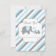 Baby Shower Thank You Flat Card. Featuring White, Blue & Grey Stripe Background with momma and baby elephants. Impress your guest with this darling invitation. Lots of Matching products and four more colours (pink, yellow, lavender, and mint green) are available. ✔Note: Not all template areas need changed. 📌If you need further customization, please click the "Click to Customize further" or "Customize or Edit Design"button and use our design tool to resize, rotate, change text colour, add text and so much more.⭐This Product is 100% Customizable. Graphics and / or text can be added, deleted, moved, resized, changed around, rotated, etc... ⭐99% of my designs in my store are done in layers. This makes it easy for you to resize and move the graphics and text around so that it will fit each product perfectly. 📌 (Please be sure to resize or move graphics if needed before ordering) You can also "TRANSFER DESIGN" on other Zazzle products and adjust the design to fit most of Zazzle items. (button is down on the right side of the page) This design is made with high resolution vector and/or digital graphics for a professional print. 📌NOTE: (THIS IS A PRINT. All Zazzle product designs are "prints" unless otherwise stated under "About This Product" on the left side of this page) The design will be printed "EXACTLY" like you see it on the screen and on the product...so please make sure when you do your changes on the resizing of any of the graphics or text that it fits in the areas correctly and that your spelling and wording is how you like it to be in size, colour and font. If you have any questions about the "DESIGN ONLY" or need help please contact me at ✉ siggyscott@comcast.net or visit my store link: https://www.zazzle.com/store/designsbydonnasiggy (Copy and Paste) I'll be happy to help. 📌 ALL OTHER QUESTIONS (shipping, refund, the printing, the product, etc...) please contact Zazzle or the Maker ⭐DIRECTLY⭐. Thank you for the support and stopping by my store - DesignsbyDonnaSiggy. © Donna Siegrist⭐⭐⭐ ZAZZLE promises 100% satisfaction. If you don't absolutely love it, Zazzle will take it back! ⭐⭐⭐ 1-888-8ZAZZLE (1-888-892-9953) Phone hours: Mon - Fri: 9AM - 5PM PT (12PM - 8PM ET)