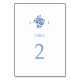 Chic with youthful elegance. This blue and white flat wedding table card exudes a fresh, modern and youthful tone. The card features a contemporary set of fonts in dusty blue and floral couple monogram. The design is repeated at the back for easy viewing.