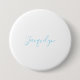 White Blue Plain Elegant Modern Calligraphy Name 3 Inch Round Button
