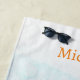 Get the party started with these cute beach towels that are easy to personalize for your bachelor party, guys' night, or bros' weekend! Modern party style design features a white and blue rock design. You can add your name in block orange letters for personalization.