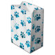 White Blue Textured Paw Print Pattern Medium Gift Bag