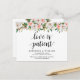 This is the modern summer blush white florals design themed, in Black font, Wedding party invitation Rescheduled postcard (love is patient) . It is the perfect and elegant way to make the reschedule announcement to your friends and family.