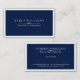 Elegant minimalistic white border, midnight blue background with white floral divider. Customizable wedding planner and event organizer business card template.