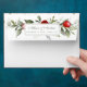 This lottery ticket favour envelope has a white exterior with a floral berry holiday design. The front it says "We tied the knott, now we hope you win the jackpot!" The outside flap in a green all-caps serif font with a thin green border surrounding the names. This envelope coordinates with the other products in the Winter Berry Christmas Wedding Collection.