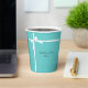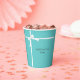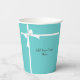 This paper cup features a graphic of white ribbon tied into a bow. Custom text allows you to add your own names or message.