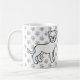 Illustration originale de Destei d'un chien de race Boxer blanc couleur manteau. L'arrière - plan a un motif d'empreintes de pattes de chien gris.