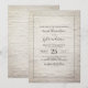 A wedding invitation featuring a white brick background with dark grey text and border.