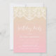 White Brocade Lace Pink Ombre Birthday Party Invitation
