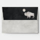 Linda Baysinger Peck's painting of a white buffalo, or bison, with full moon, on the flap and light grey leather texture.Image © Linda Baysinger Peck All Rights Reserved
