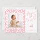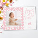 Celebrate Easter with this personalizable photo card designed by Destei. One side features a square spot for your photo that is framed with a thin white border and set against a light pink background patterned with white bunny silhouettes. The other side has a white background with “Happy Easter!” in playful tilted pink text, a lying-down pink bunny silhouette and space to add a name and year. The back of the card repeats the white bunny pattern over the pink background, creating a cohesive design perfect for spring greetings.