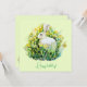 White bunny and flowers card