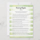 Enjoy playing this Nursery Rhymes Quiz baby shower game on soft, green and white watercolor stripes background. Cute, white, bunny rabbit on back with templates created for you.