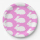 White Bunny Pattern On Pink Paper Plate
