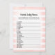 Enjoy playing this Animal Baby Names baby shower game on soft, pink and white watercolor stripes background. Cute, white, bunny rabbit on back with templates created for you.