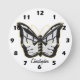 White Butterfly Design Personalised Round Clock