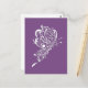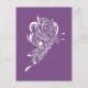 a decorative white tattoo design of an abstract butterfly with lots of ornamental elements on a purple postcard