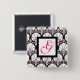 WHITE CARNATIONS DAMASK MONOGRAM pink fuchsia 2 Inch Square Button