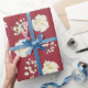 This fun and bold wrapping paper coordinates with our Merry Christmas Flower Typography holiday design but is perfect for year round use. It features a festive red background and photo images of white carnation flowers.