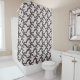This shower curtain features an interlocking pattern of cartoon geese. The white birds with their yellow bills are depicted in flight against a charcoal grey evening sky.