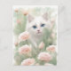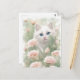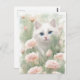 White Cat and Pink Flowers Postcard
