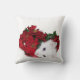 Long haired, blue eyed white kitty cat plays with the poinsettia Christmas decorations photo holiday throw pillow